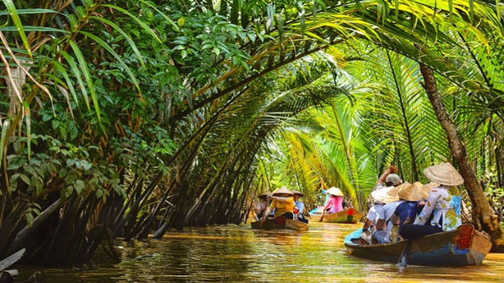 8h30: Sau đó đoàn khởi hành đi tham quan khám phá: 4 cù lao Long, Lân, Quy, Phụng và trải nghiệm sông nước miệt vườn: