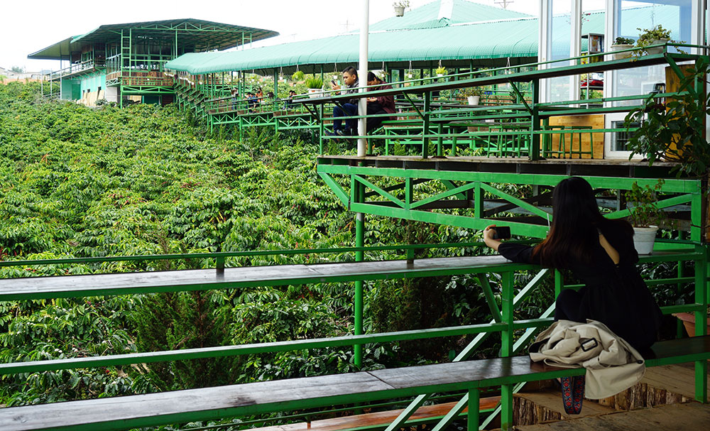 Đoàn khởi hành tham quan: Quý khách dừng chân ngắm cảnh và thưởng thức cafe chồn hảo hạng tại Mê Linh Quán, nơi được cư dân mạng truyền tai là "quán Cafe có cảnh quan đẹp nhất của Đà Lạt" (chi phí thưởng thức cà phê tự túc). Tiếp tục hành trình về điểm đón ban đầu